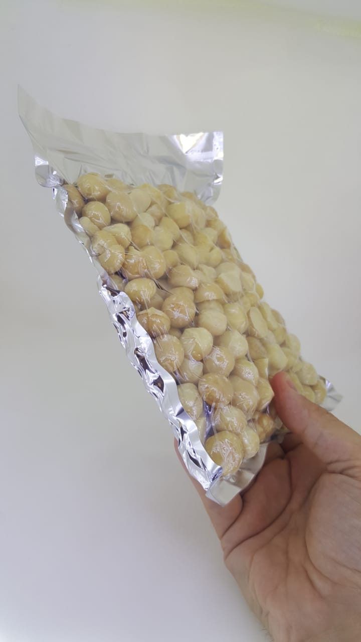 Este item consiste em 1 pacote de Macadâmias de primeira qualidade, tipo 2, torradas e com 60% de inteiras e 40% de metades.